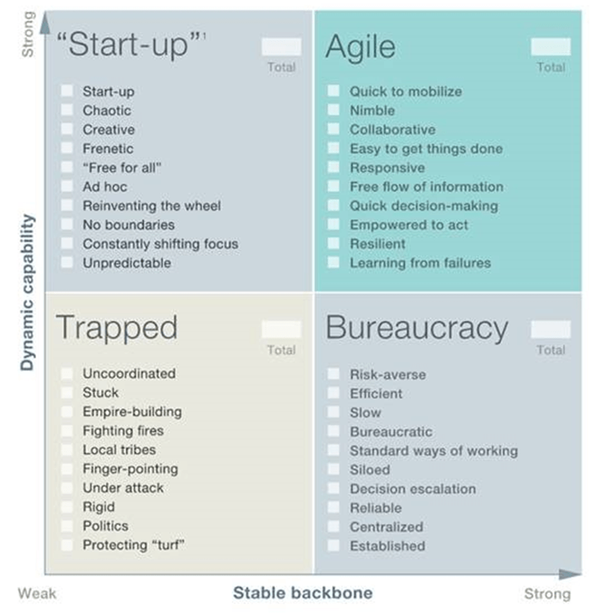 • Challenging conventional thinking about structures and roles and introducing an agile, networked approach